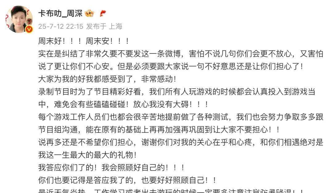 综艺官博驳倒区,周深粉丝控诉节目组漠视安全问题,罔顾嘉宾东谈主身安全。